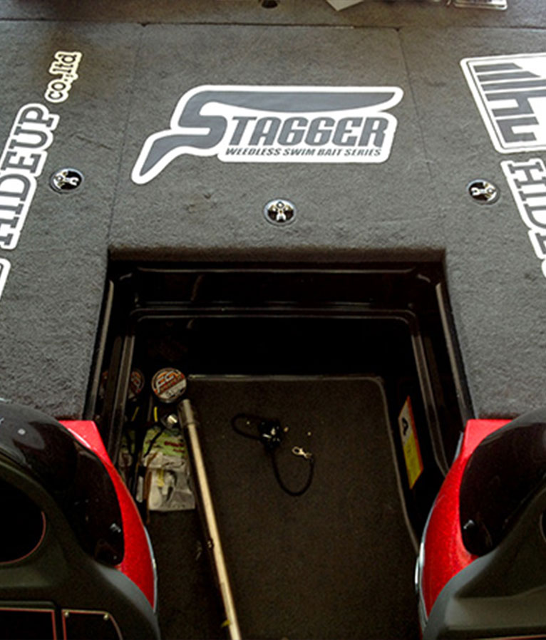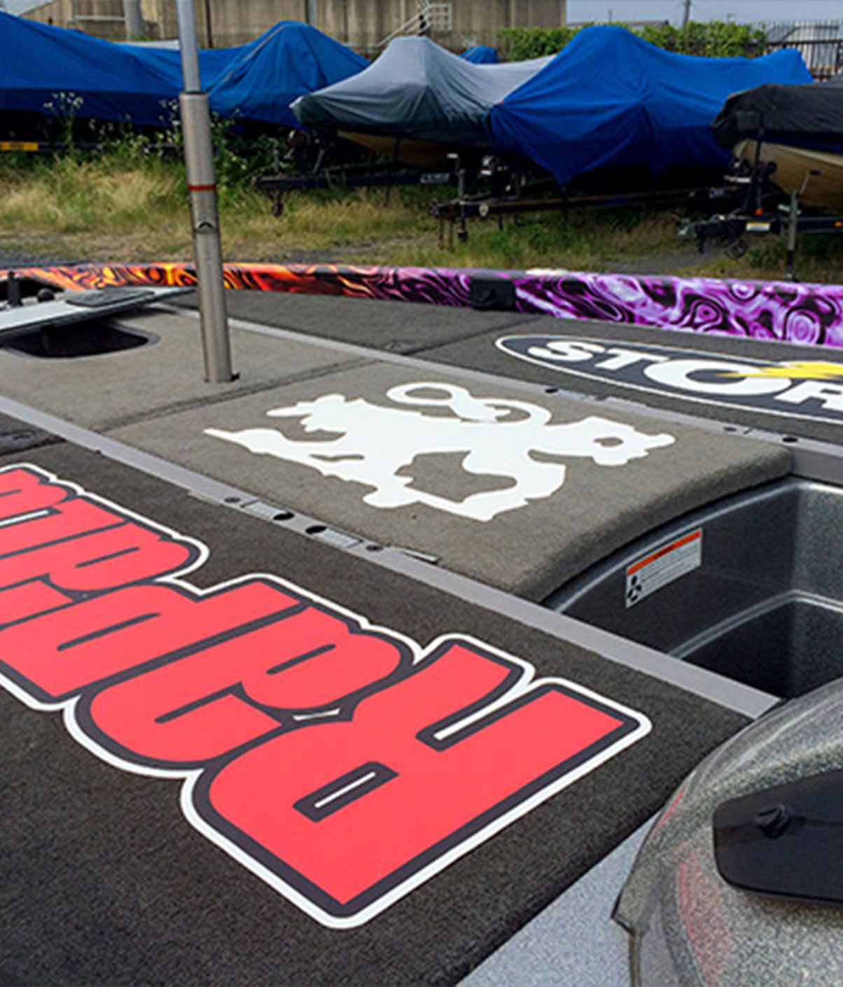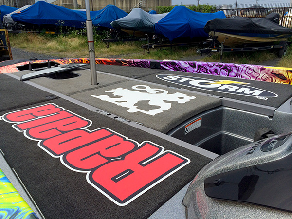 主にバスボートのデッキに使用するデカールです。水に濡れてもスリップしにくい素材を使用しています。